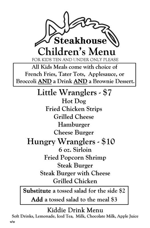 Kids Alamo Steakhouse Kids Menu