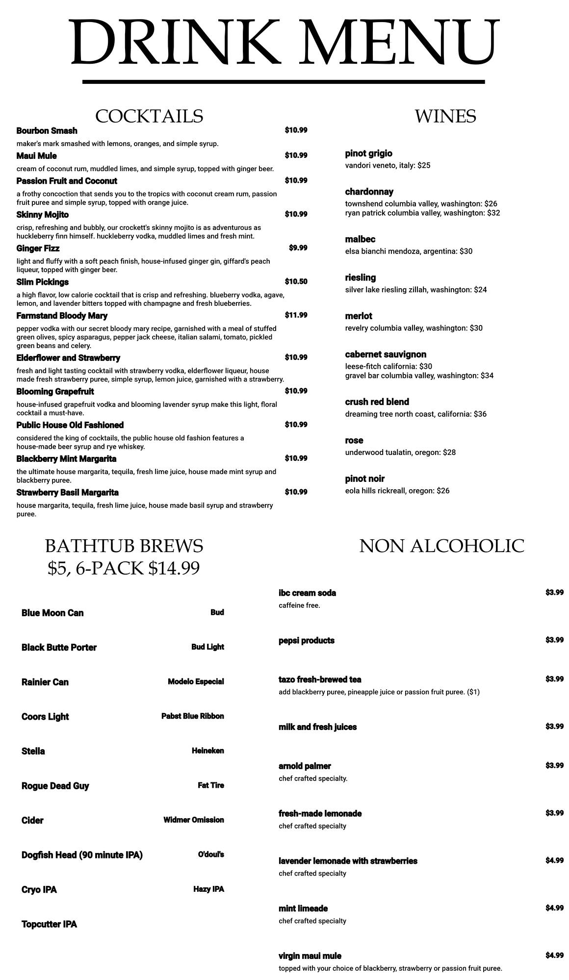 Crockett's Public House Menu