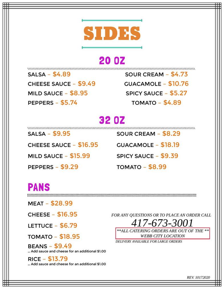 Gringos Menu