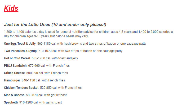 Kids Iron Skillet Kids Menu