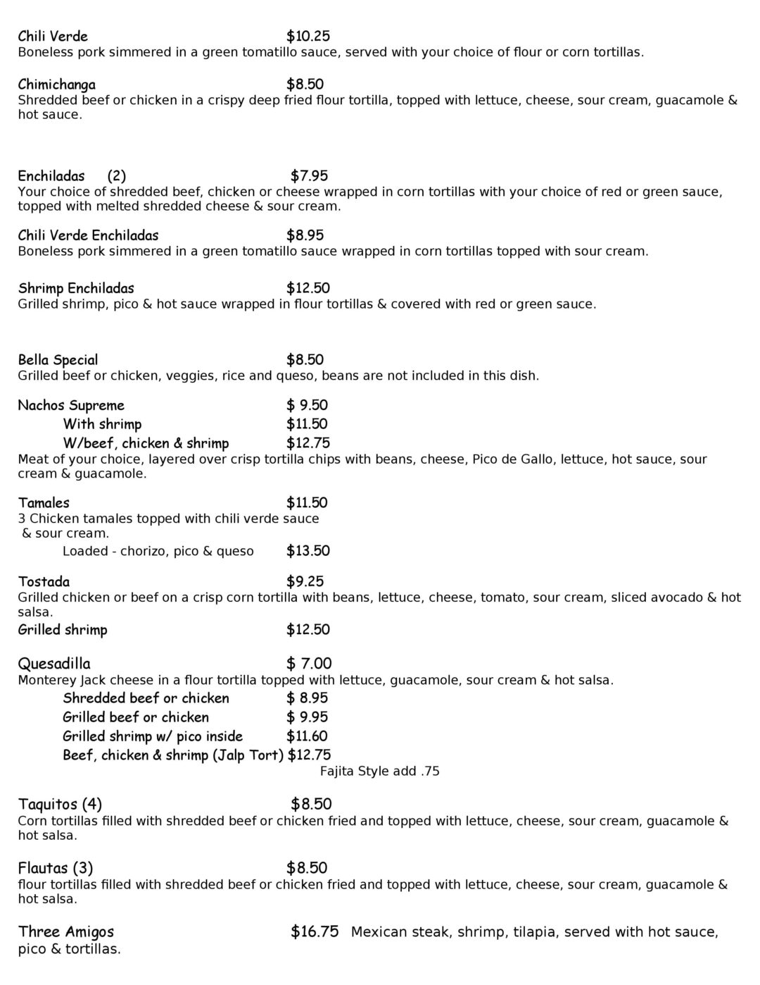 La Casita De Martin Menu