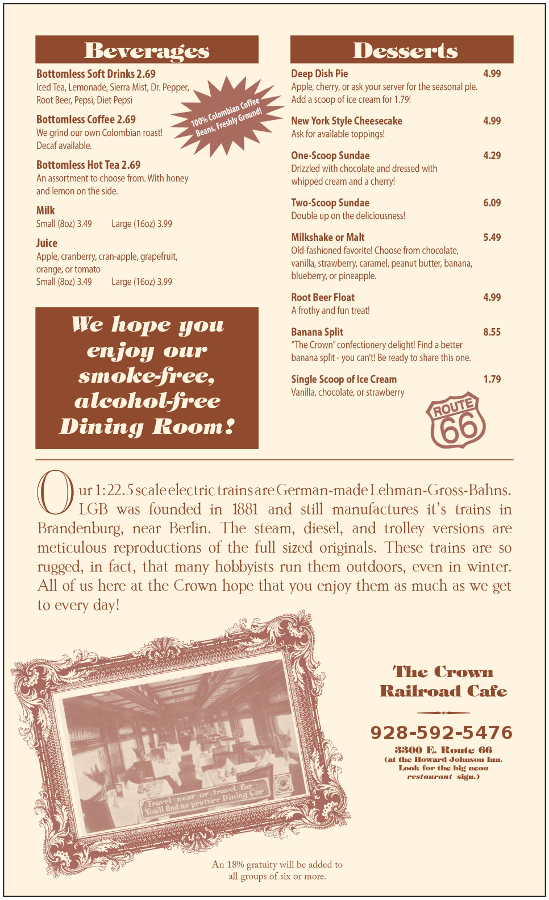 The Crown Railroad Café Menu