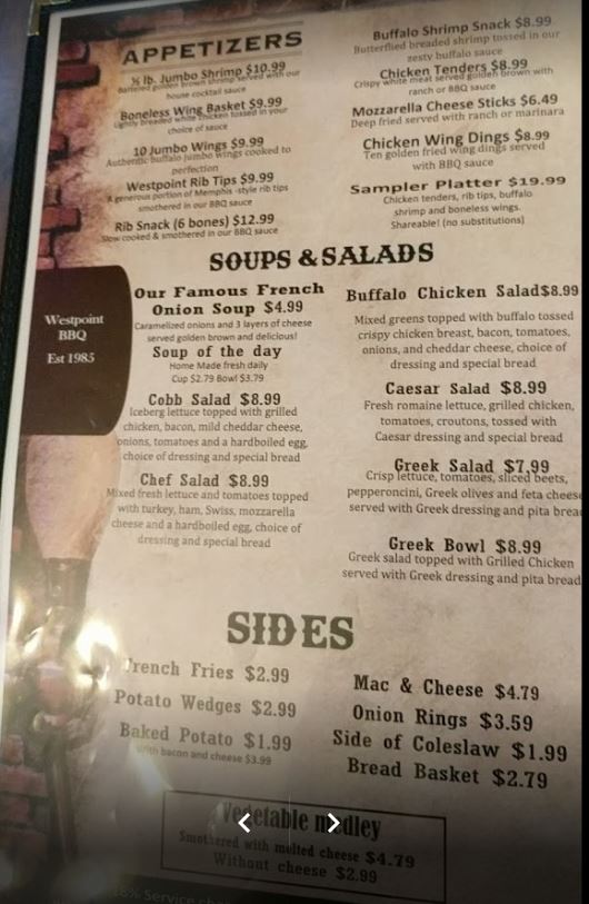 Westpoint Bbq Menu